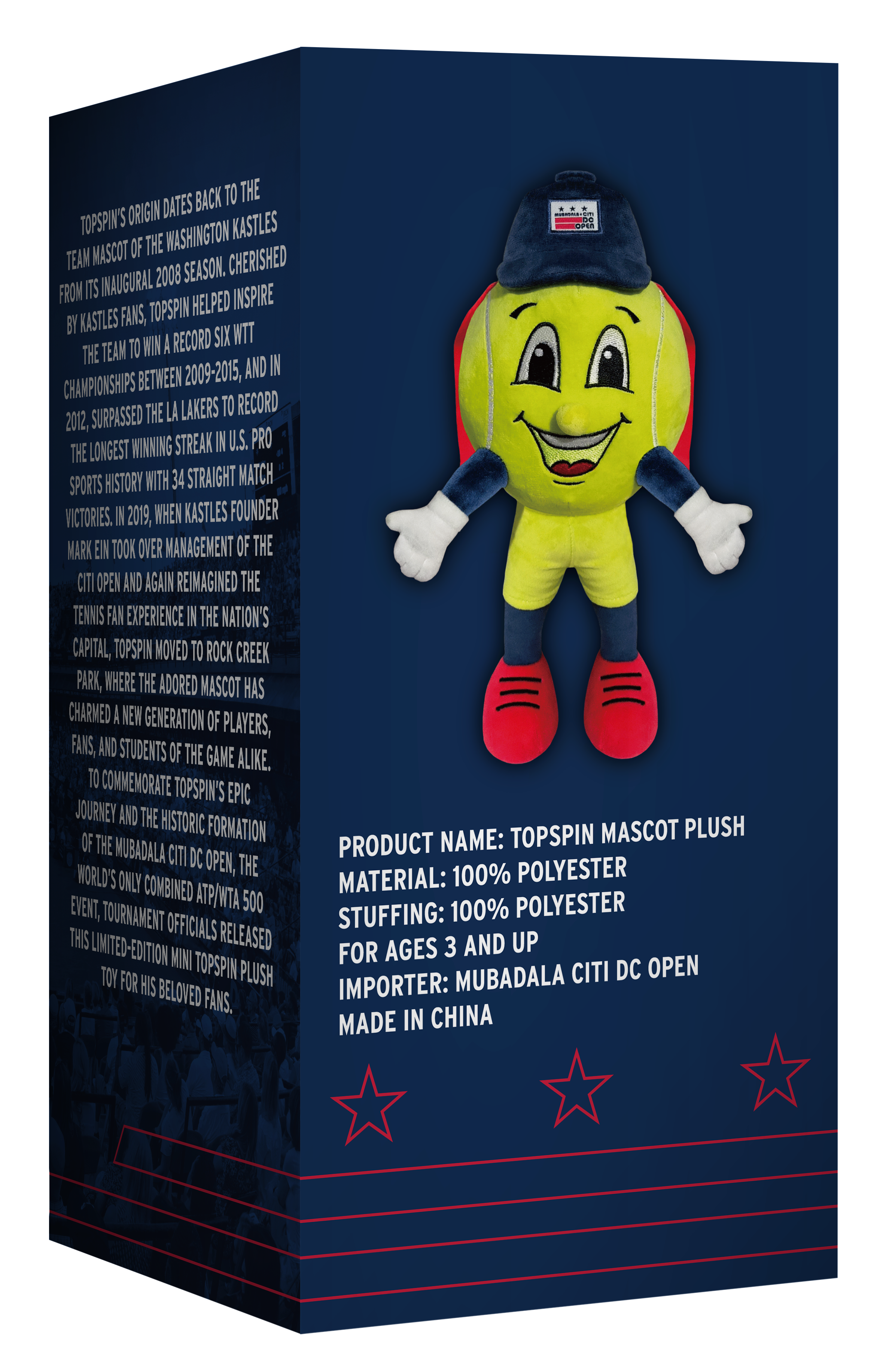 One of my dreams for this year's tournament was to launch a unique product that had never been done before. Back in 2019, I redesigned the iconic Topspin Mascot from the historic Washington Kastles franchise and proudly introduced it to a new audience as the vibrant mascot for first the Citi Open and then the renamed Mubadala Citi DC Open tennis tournament. I envisioned creating a plush toy, just like many top sports organizations do for their mascots, so that kids and fans could take home a piece of the excitement.