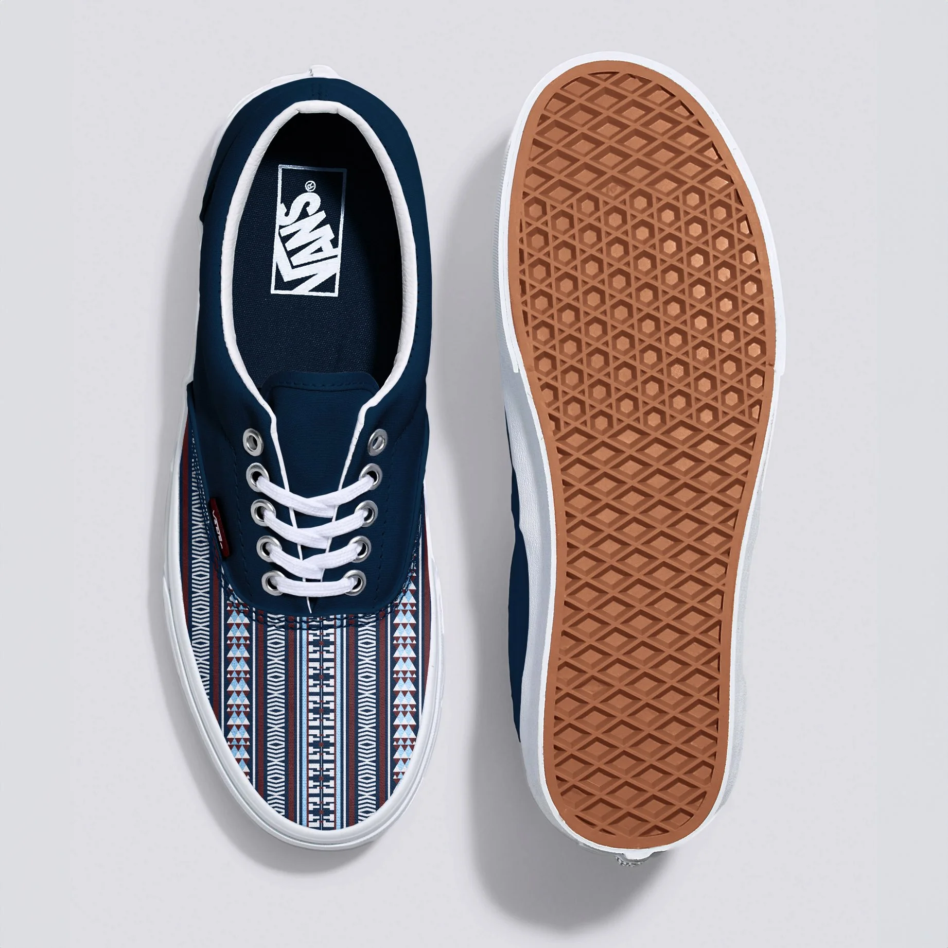 For this Vans Off the Wall project, I wanted to experiment with patterns, and the Vans Era silhouette felt like the perfect choice. I combined leather accents with a tribal canvas pattern, blending premium quality with added durability. The result is a versatile shoe that works just as well for casual wear as it does when dressed up with the right outfit.